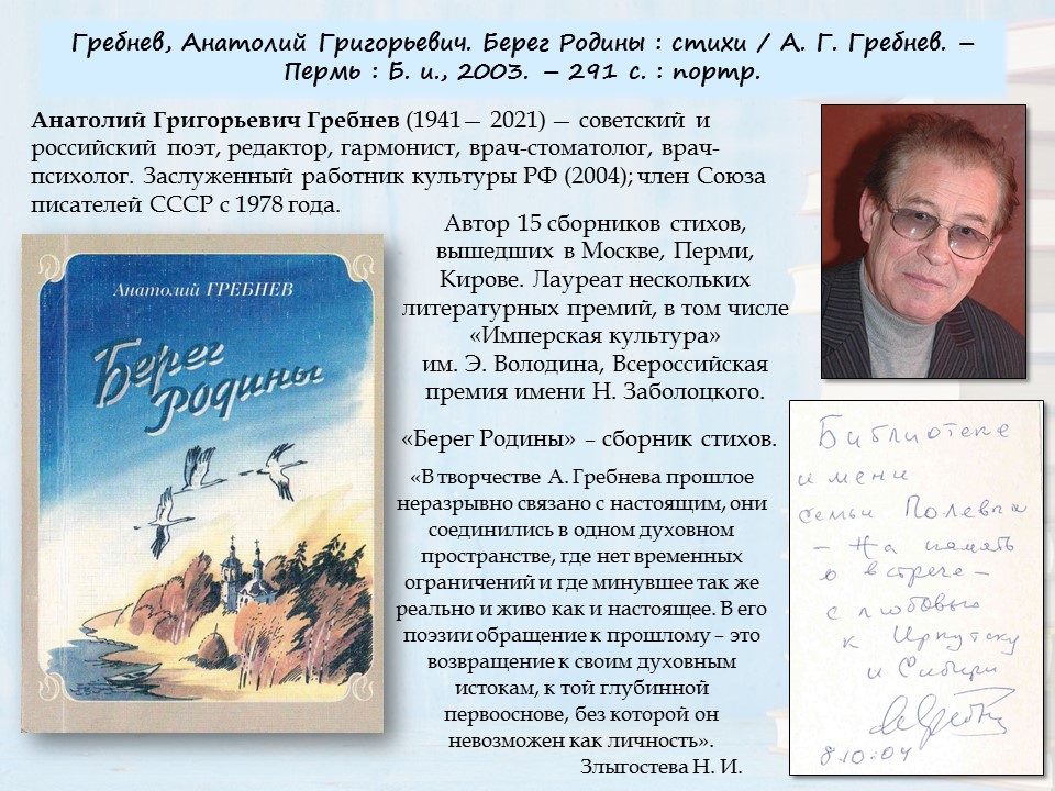 Фонд редких книг продолжает знакомить читателей с коллекцией автографов. Книги с надписью автора имеют особую уникальность и ценность. Каждый автограф – это индивидуальный штрих, делающий книгу единственной в своем роде.