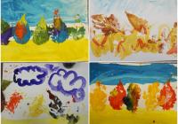 Воспитанники старшей группы детского сада №184 впервые попали на мастер-класс в Гуманитарный центр, но это лишь потому, что прежде были маленькими. А работа над композицией с осенними атрибутами для них - не первая, накануне они в группе с воспитателями создавали аппликацию с колосками и засушенными багровыми листьями. А в Гуманитарном центре на занятии под руководством Юлии Шипицыной детям предложили не тронутые осенью зелёные листочки, кисточки и разноцветную гуашь. Сначала рисовали ясное синее небо и усыпанную листьями траву, а потом накладывали мазки на свежий зелёный листок, он тоже был участником творческого процесса. «Поменьше воды – побольше краски!», - подбадривала ведущая. В итоге у малышей получился осенний пейзаж с «кружевной» рощей. «Я ещё забыла главное – нарисовать, как светит солнышко!» - спохватилась одна из маленьких художниц. И верно – осень-то за окном – золотая, солнечная!